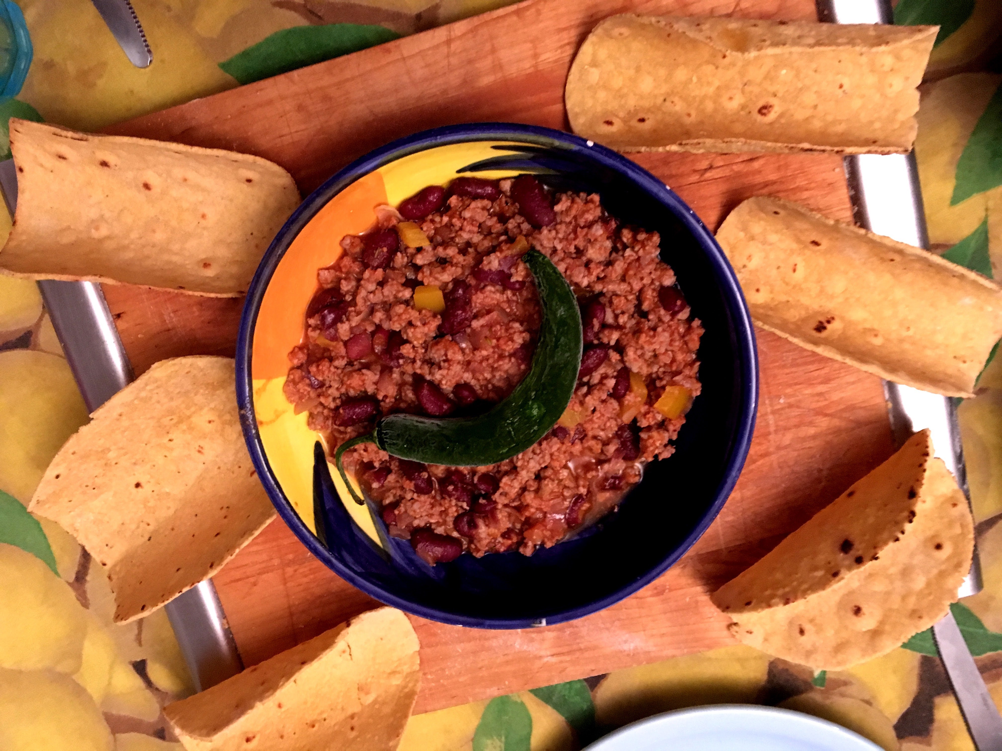 Oggi per scaldarci un po' ho pensato di fare un bel giretto in Messico ( almeno virtuale!!) e ho pensato di proporvi questa ricetta , delle tacos che ho voluto preparare con farina di ceci e mais ( gluten free) farcite con una versione un pochino più semplificata, ma altrettanto saporita, del chili di carne...accompagnate con tortillas e guacamole avrete messo in tavola calore e colori messicani!